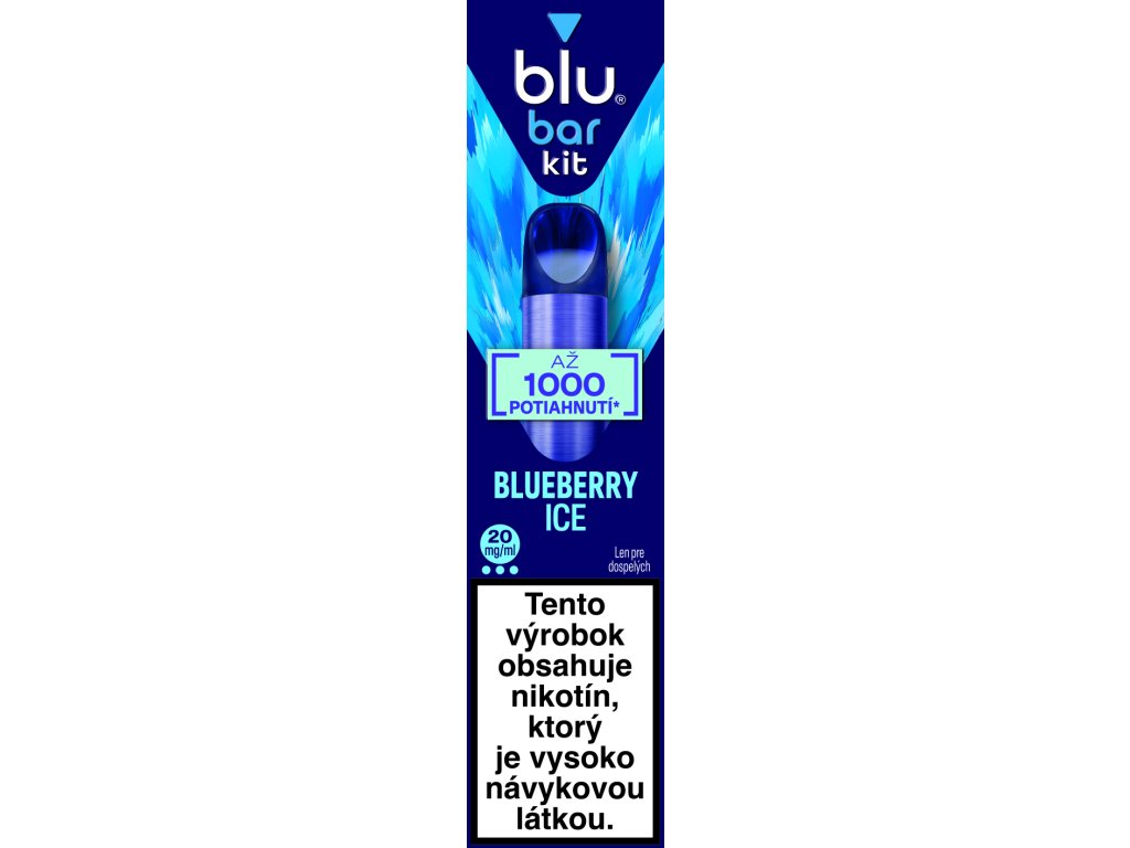 Blu Bar Kit predplnená sada pozostáva z nabíjateľnej batérie 500mah a jedného jednorázového Blu Bar Pod cartridgeu.