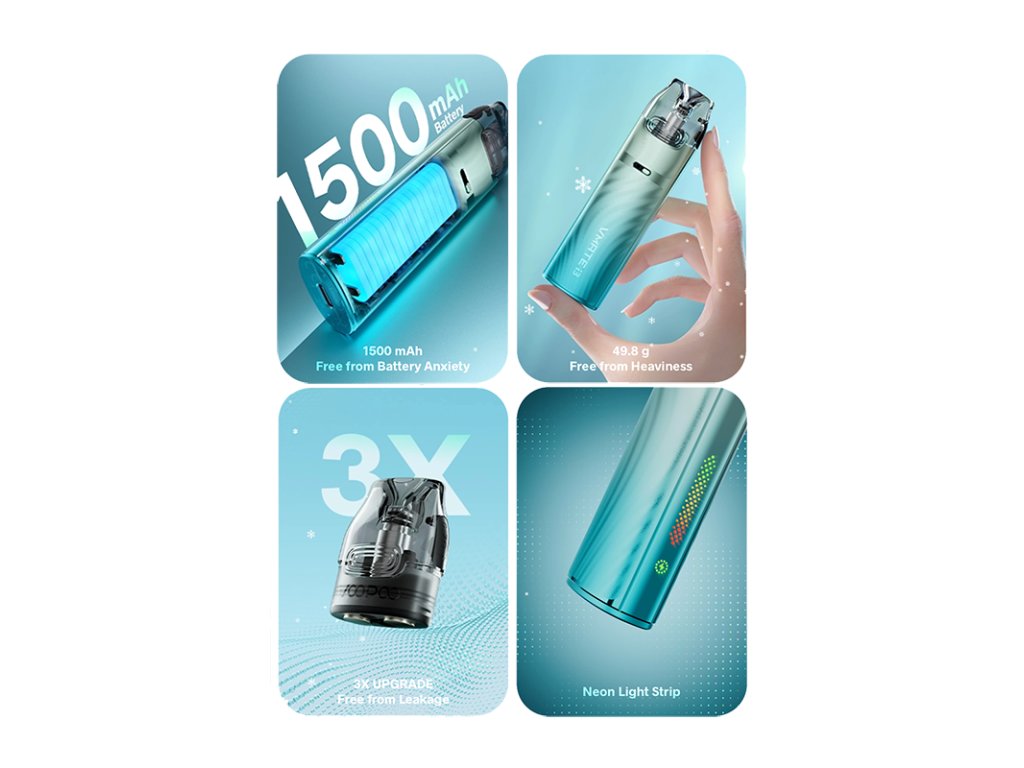 Tretia generácia základnej varianty modelovej rady VMATE sa pýši integrovanou batériou s kapacitou 1500mAh a upgradovanými cartridgemi VMATE V3 pre ešte dlhšiu životnosť a výraznejšiu chuť pri každom potiahnutí. O stave batérie neustále informuje prehľadná a zmodernizovaná LED indikácia na bočnom paneli so štýlovou neónovou animáciou nad ňou. Neuveriteľne vkusná e-cigareta, ktorá osloví hlavne začiatočníkov a nenáročných používateľov. V jednom tele dostanete skvelú batériu, plne automatické použitie a praktickú páčku pre reguláciu prívodu vzduchu ku cartridgeu. Pokiaľ hľadáte svoju vstupnú bránu do sveta MTL vapingu, práve ste ju našli.